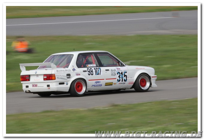 Aber davon abgesehen hatten wir sau viel Spaß während Ralf in der F den etwas kürzeren Clubslalom und auch überlegen den DMSB Slalom gewann duellierten Patrick und ich uns bis aufs Messer. Da ich wie ich bereits geschrieben hatte das ABS nicht gewohnt bin, hatte ich gleich beim 2. Bremsen beinahe das Auto zerstört, irgendwie Bremst das nicht so wie gewohnt mit Traingszeit von 1.02,95 und patrick mit 1.02,69, bei dem patrick aber 5 Pin mitbrachte. Der 1. Wertungslauf durfte ich wieder beginnen, 1.01.96 war fast eine Sec. besser als im Training, nur das ABS ist noch ungewohnt, Patrick konnte seine Trainigszeit nicht verbessern und fuhr eine fehlerfreie aber für Ihn entäuschende 1.03,48. Ein klare Sache sollte es für mich sein doch beim Kurvenausgang der 1. links rutschte der BMW von dem rechten Weg ab ein Poller flog, einen überfahren siehe Bild als guter Gast konnte ich natürlich nicht auf dem Auto vom Eigentümer gewinnen. Bestzeit 1.01.20 Patrick fuhr trotzdem nochmals auf Angriff und konnterte die zeit auf 1.00.79.